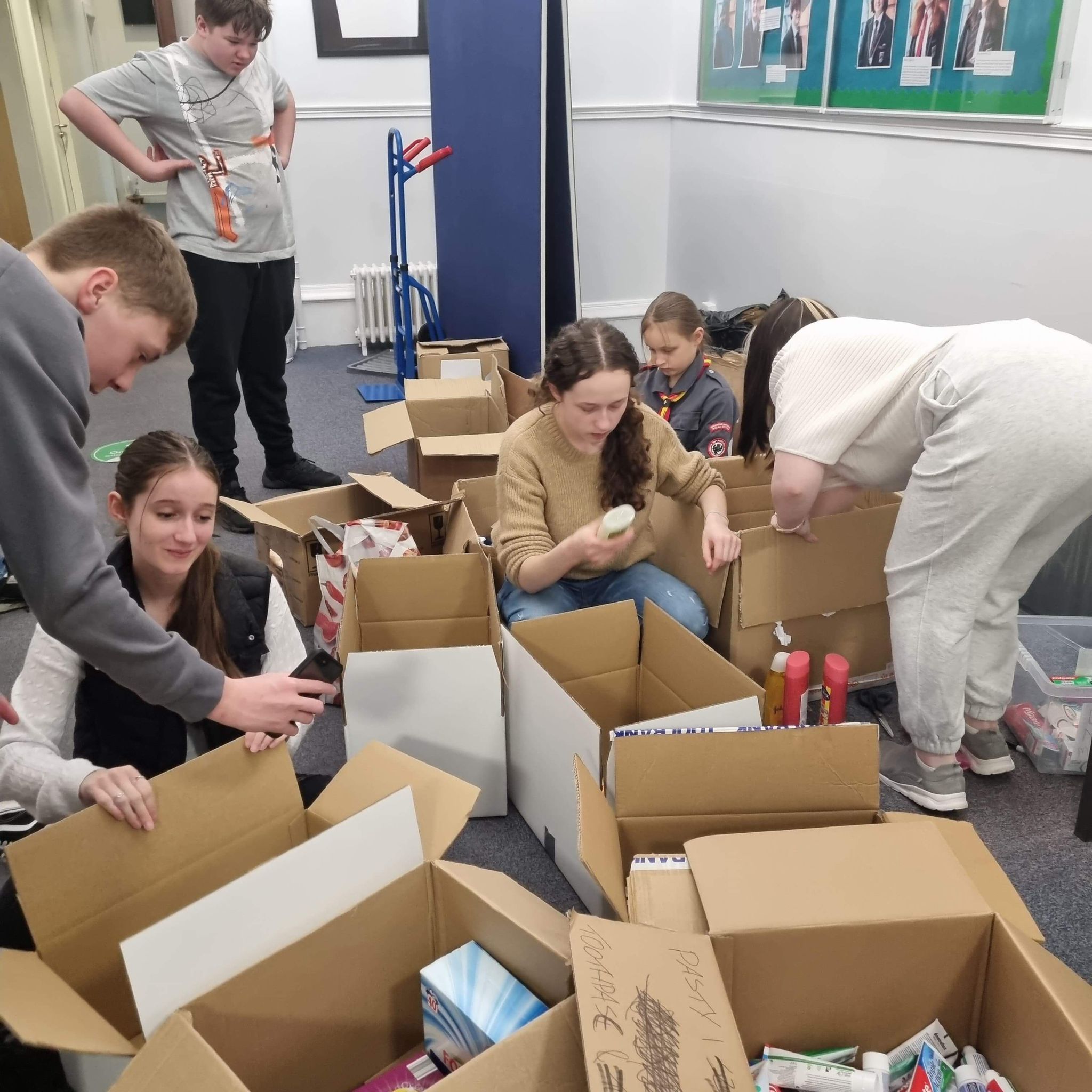 The School received a huge amount of donations from Albyn and the Polish School who also organised a bake sale last Saturday. The Polish Scouts were involved in the packing of donations at the weekend. These boxes were organised so that aid could be distributed much more quickly on arrival. It was a real team effort!